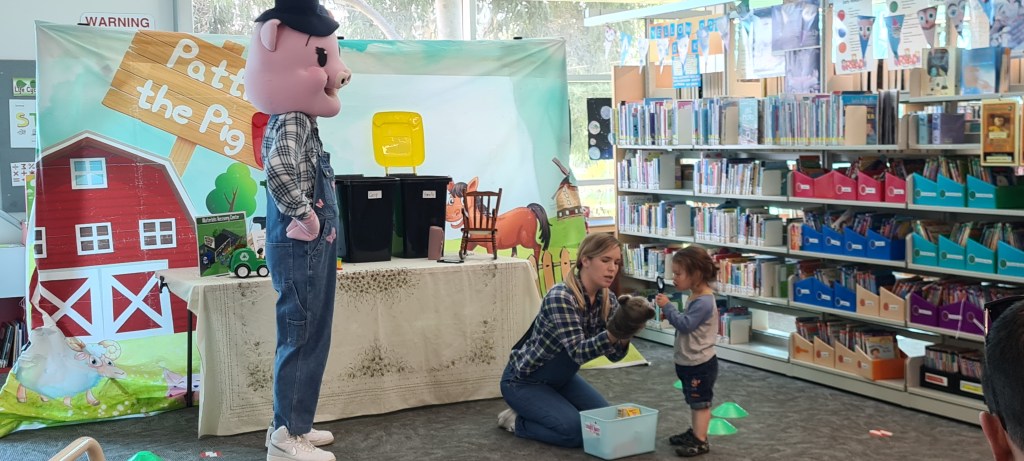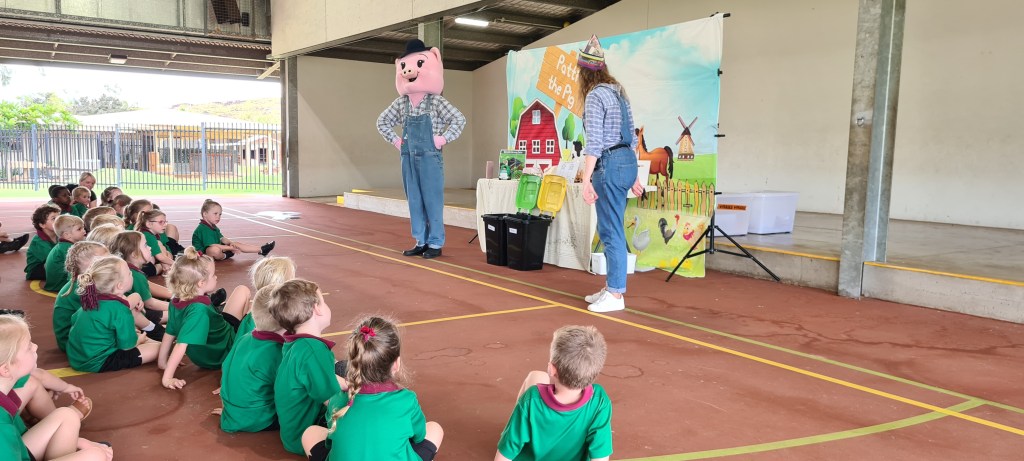 The Patti the Pig: It’s Not All Rubbish Kids show has been performed all over Sydney and Perth, including for Goodstart, Explore and Develop and Reggio Emilio Child Care Centres and Councils including Parramatta, Randwick, Canterbury Bankstown, Bayswater, Bassendean, Stirling and more! The Show has also completed two regional tours of the Shire of Augusta Margaret River and the Pilbara, thanks to grants from the Waste Authority of WA.